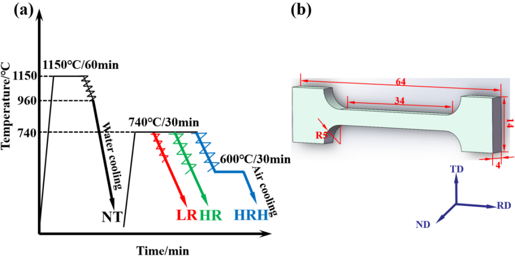 Four different rolling strategies were applied to comparatively study the post-rolling process on the microstructure and high-temperature mechanical properties of a high-boron P92 martensitic heat-resistant steel. Both the characteristics of martensitic lath structures and the evolution of precipitation and texture states are illustrated. Their influence on mechanical properties was also discussed based on the recrystallization state, dislocation density, precipitation state, and also the activation tendency of slipping systems of the dominated texture component. Results revealed that the post-rolling process can significantly improve the plasticity of quenched P92 steel while leading to the reduction of strength simultaneously. However, a high reduction and post isothermal holding sample (HRH) shows the best high-temperature mechanical performance with a balanced tensile strength of 352 MPa and elongation of 33.6%. It is the enhanced precipitation strengthening, recrystallization refinement, and lower Schmid values of main texture components that contribute to the mechanical property improvement of the HRH sample.