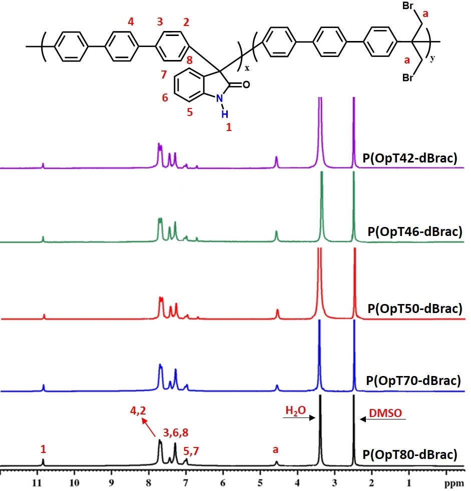 In this work, grafting alkaline stable piperidinium cations via ethylene oxide (EO) spacers onto an aryl ether-free poly(oxindole terphenylene) backbone was adopted as a strategy for designing self-aggregating side chain AEMs with optimized alkaline stability. Aryl ether-free poly(oxindole terphenylene) backbones were synthesized via superacid-catalyzed step-growth polycondensation and were subsequently functionalized with either piperidinium containing hydrophilic, dipolar EO or hydrophobic alkyl spacer, aiming to explore the effect of side chain-engineering on conductivity and alkaline stability of the resulting AEMs. The AEM membrane containing dipolar ethylene oxide spacer, despite its lower ion exchange capacity (IEC), exhibited a more pronounced microphase separated morphology as evidenced by TEM, and higher ionic conductivity (reaching up to 30.5 mS cm−1 at 80 °C) compared to the hydrophobic alkyl spacer-containing AEM membrane. This was attributed to its higher water uptake stemming from the EO hydrophilic nature and the formation of interconnected ion-conducting channels due to piperidinium–EO interactions. Additionally, the hydrophilic nature of the ethylene oxide groups endowed the membrane with enhanced alkaline stability, preserving its mechanical integrity and retaining 71.5% of its initial conductivity after 3 weeks of immersion in 2 M KOH at 80 °C. In contrast, the AEM with an alkyl spacer experienced severe degradation under the same conditions. These results suggest that incorporating flexible alkoxy-containing spacers onto an aryl ether-free backbone is a promising and simple route for fabricating mechanically and chemically robust AEMs with sufficient conductivity.