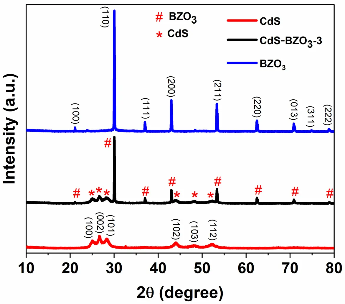 Photocatalytic water splitting using solar light, a promising technical approach for hydrogen production. However, the slow charge transfer and rapid recombination of photogenerated charge carriers in photocatalysis limit their practical application. To address these issues, in this work, we successfully prepared a novel CdS-BaZrO3 (CdS-BZO3) heterojunction via a simple chemical-bath deposition method. The as-prepared heterojunctions facilitate the separation and transportation of photogenerated charges, while also maintaining the high redox-oxid ation ability of the photocatalysts. As a result, CdS-BZO3 heterojunctions show enhanced photocatalytic water-splitting hydrogen production ability without a co-catalyst. Especially, the optimized CdS-BZO3 sample exhibits high photocatalytic activity with a hydrogen production rate of 44.77 μmol/h, which is 4.4 and 2.9 times higher than that of BZO3 and CdS, respectively. At the same time, the CdS-BZO3 heterojunction exhibits good stability in the photocatalytic hydrogen production cycle test. This work provides a reference for the heterostructure construction of perovskite-based photocatalysts to improve photocatalytic performance.