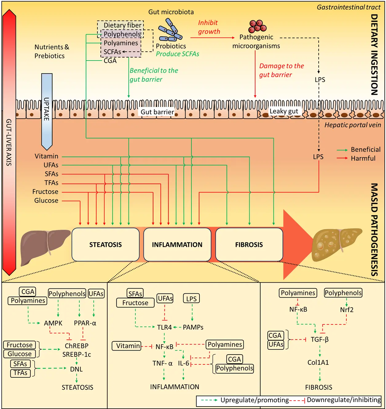 Through the use of prebiotics and probiotics, fermented foods offer significant health benefits by enhancing host nutrition and microbiota composition while providing distinctive flavor profiles. Fermentation substantially alters the bioactive compounds in these foods compared to their natural state. Additionally, fermented foods contain probiotics that can modulate consumers’ gut microbiomes, which in turn regulate host biochemistry to help combat various metabolic diseases. Metabolic dysfunction-associated steatotic liver disease (MASLD) represents a growing global health burden. Gut microbiome dysbiosis, combined with unbalanced nutritional intake, is considered a primary driver of disease pathogenesis. Fermented foods can modify the bioavailability of micronutrients—including carbohydrates, polyphenols, and vitamins—thereby influencing host metabolism. Moreover, the probiotics present in fermented foods, along with their modulatory effects on the gut microbiota, contribute to both the management and prevention of MASLD. Modern fermentation approaches, leveraging synthetic biology, systems biology, and metabolic engineering, can further maximize these health benefits. This review summarizes the components, bioactive compounds, and mechanistic pathways by which fermented foods influence the pathogenesis of MASLD, and highlights the potential applications of modern fermentation technologies to enhance their health-promoting properties.