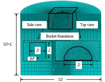 Bucket foundations have been widely used in marine engineering, such as offshore wind power, due to their anti-overturning performance and convenient installation. In China’s coastal areas, clay soil is widely distributed, and most of the seabed has layered clay. However, the bearing capacity of bucket foundations in layered soil is significantly different from that in homogeneous soil. Currently, there is relatively little research on the bearing capacity of bucket foundations in layered clay. Therefore, the finite element analysis method is adopted to establish a bearing capacity calculation method of bucket foundations in double-layer clay. The axial failure mechanisms and ultimate bearing capacity of bucket foundations in double-layer clay are deeply discussed, and the corresponding ultimate bearing capacity calculation method is given based on the numerical analysis results. The combined bearing capacity of bucket foundations in double-layer clay is fully analyzed, and the evolution method of V-H, V-M, H-M, and V-H-M failure envelopes is given.