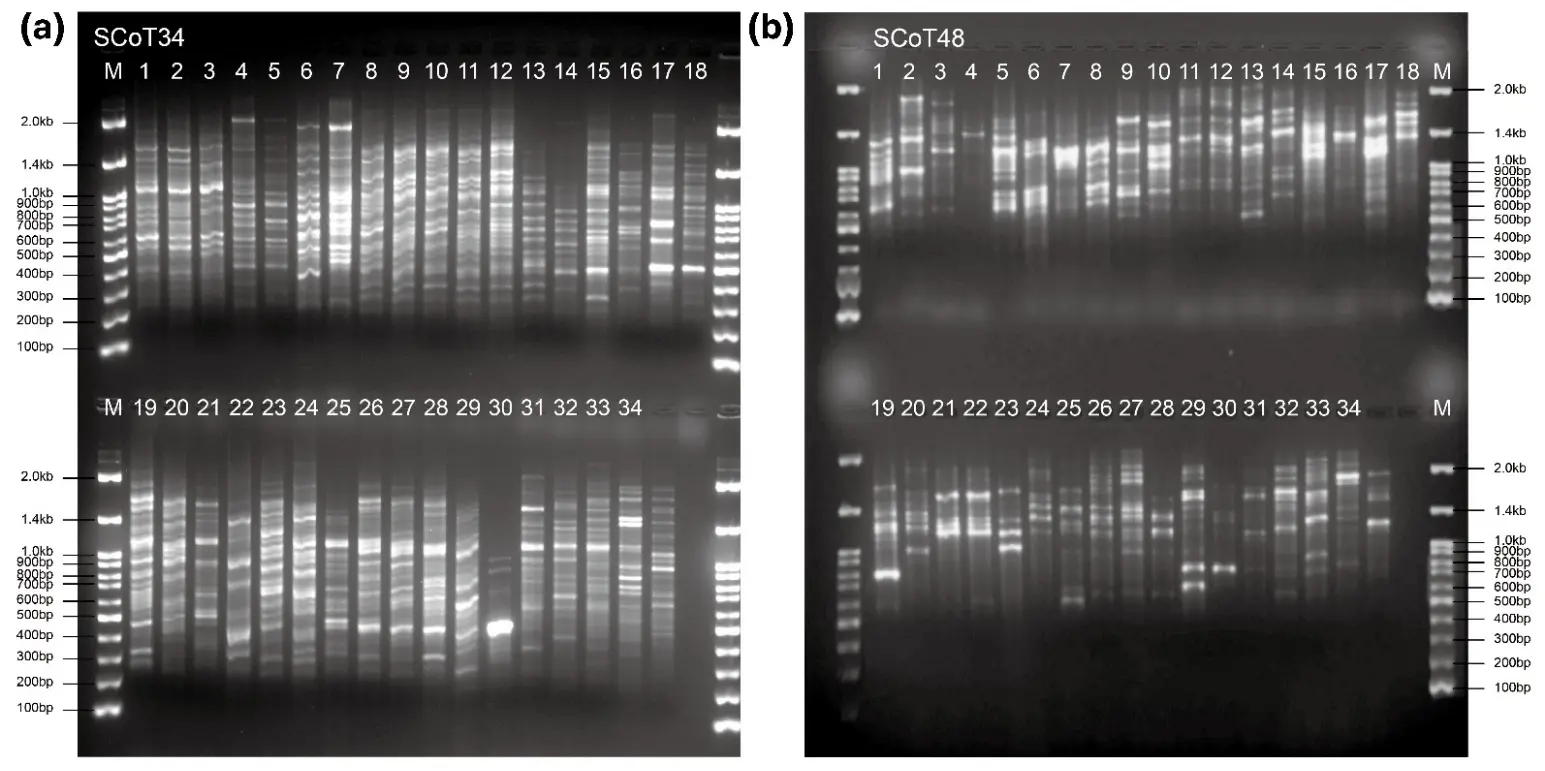 The genus Viburnum (Adoxaceae) comprises deciduous broad-leaved shrubs with a thicket-like growth habit, and globally about 150–200 species are recognized. In Korea, several native Viburnum taxa have recently been listed as threatened, emphasizing the need for robust genetic information to support conservation and management. This study aimed to evaluate genetic diversity and interspecific relationships among 33 Viburnum taxa and to establish a practical framework for their identification and management using start codon targeted (SCoT) markers. SCoT markers were chosen because they are easier to apply than simple sequence repeat (SSR) and generally provide richer nuclear variation than chloroplast DNA (cpDNA), offering a simple yet informative tool for distinguishing closely related members of this shrub genus. Seventeen SCoT primers produced 489 polymorphic bands, revealing substantial nuclear variation among the 33 Viburnum taxa. An unweighted pair-group method with arithmetic mean (UPGMA), we grouped the 33 accessions into four major genetic clusters, and this clustering pattern was in good agreement with the structure inferred from principal component analysis. These clusters highlighted the genetic isolation of the V. plicatum group and the close affinity of the V. carlesii complex, while also indicating complex relationships among East Asian species. In contrast, V. plicatum formed Cluster IV, highlighting the taxonomic positions of these lineages and their potential priority for conservation and breeding. Overall, the results demonstrate that SCoT markers provide an efficient, operationally simple system for discriminating between closely related accessions and major genetic lineages within Viburnum. The SCoT-based approach developed here provides baseline information for species and cultivar identification. It also supports germplasm conservation and the selection of genetically divergent parents for future breeding programs.