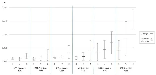 . The graph of Average values and Standard deviations of the CPs for both flight heights.