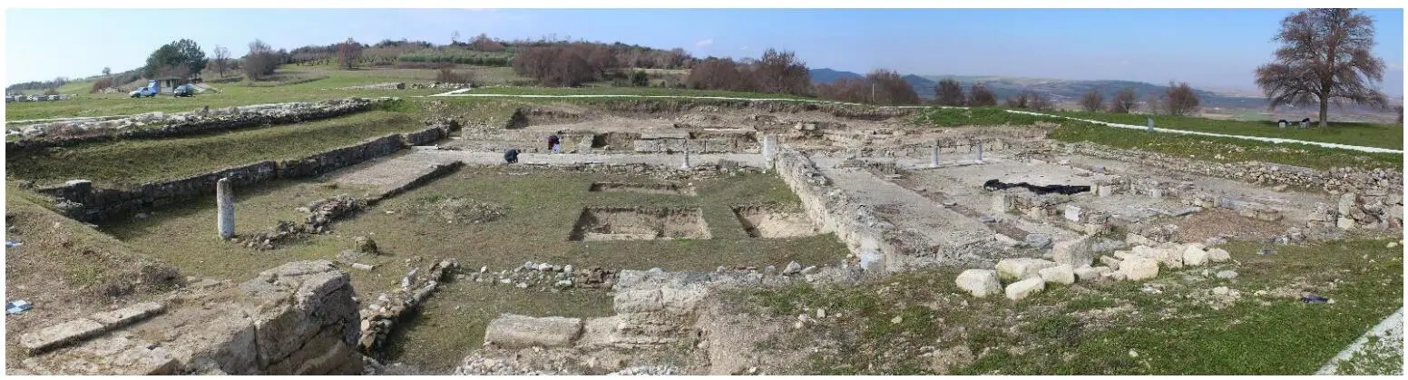The Early Christian Basilica C is located in the acropolis of ancient Amphipolis ( and ), at an altitude of ~120 m, dating back to the 6th century AD and came to light after excavations carried out in the 1960s and 1970s. It con-sists of the main temple measuring ~28×18 m () and the three aisles, which were separated by two colonnades of six columns each. In the eastern part of the temple, there is a niche (semicircular arch) with a radius of ~6.5 m. In the western part of the temple and perpendicular to the aisles is the narthex, whose dimensions are ~16.5×4 m, while in the southern part of the temple there is the atrium. It is worth noting that magnificent mosaics were found on the floor of the narthex and in the three aisles. Roman buildings were discovered to the west and south of the temple, and it is suspect-ed that much of the western buildings lie beneath Basilica C [