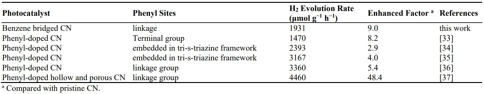 48]. It proved that the recombination rate of photogenerated carriers can be effectively reduced after forming benzene bridged CN, which is conducive to enhancing its ability to photolysis water and hydrogen evolution.