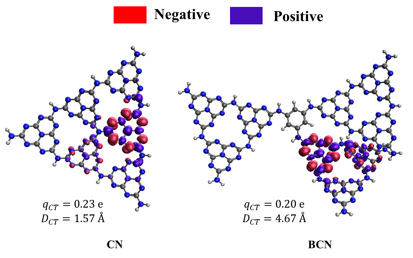 4 show an alternating distribution, which leads to the easy recombination of the photogenerated electron hole pairs and short life. After the introduction of benzene ring into BCN, the active sites of HOMO and LUMO change significantly and the degree of delocalization increases, which will help to improve the separation efficiency and lifetime of g-C