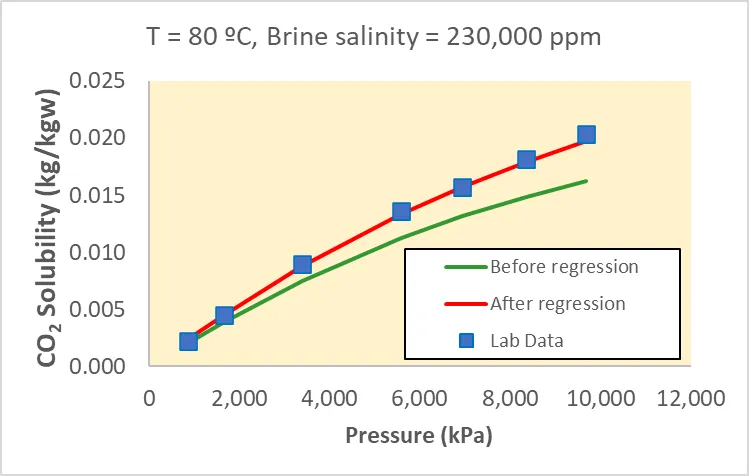 2 solubility in brine with 230,000 ppm at 80 °C (in blue dots [