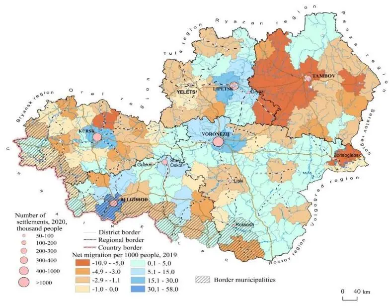 The non-diversified structure of the rural economy, unemployment, insufficient improvement and development of the social environment, and the attractive image of the big city increase the people's motivation to leave their rural communities. Small towns share this experience with villages. The population of peripheral districts tends to move to regional centers (Belgorod, Voronezh, Kursk, Lipetsk, Tambov). Therefore, in the future, metropolitan areas will continue receiving new residents from villages and small towns in peripheral municipalities, while the "hinterlands" will keep on losing entire villages.