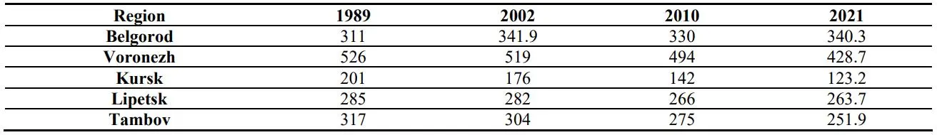 Community populations and settlement patterns are largely kept sustainable by positive or neutral population dynamics. The Central Chernozem Region is among the regions of the Russian Federation that have not experienced population growth for a long time. On the contrary, its entire population size, and the size of the rural population in particular, has been declining.