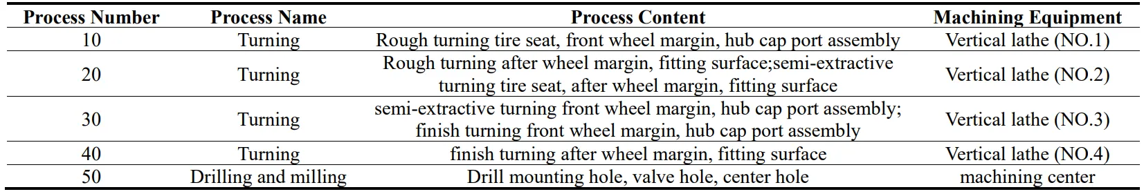60]. The hub machining is divided into five processes, as shown in . According to the car hub’s need to carry out rough car, semifine car, and fine car processing, turning is divided into four processes, with drilling in the machining center as a process.