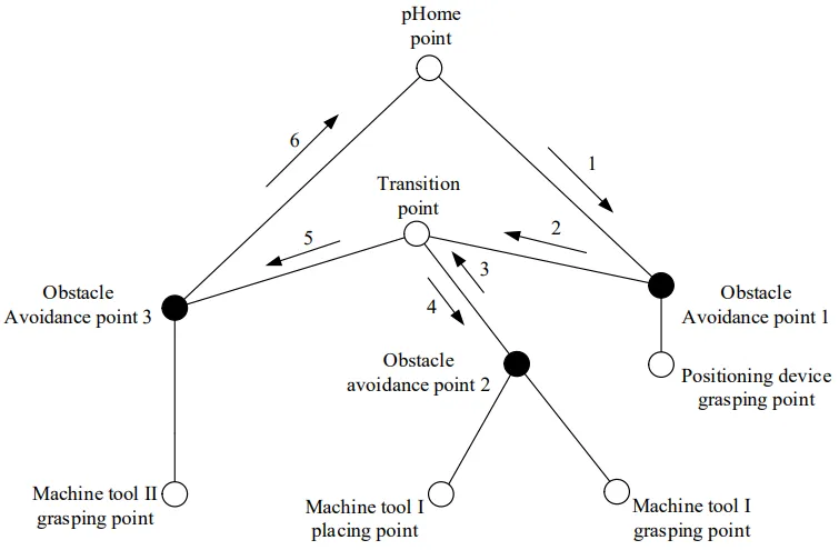 Starting from the technological process, the loading and unloading device, machine tool fixtures, and MQL production conditions are designed as a whole, and the mechanism is shown in . By four vertical lathes and a machining center to complete the hub of five processes, five machine tools are arranged into a two-row layout, through ground track unloading manipulator to complete the machine and roller table, roller table, and roller table between the material transmission. MQL is embedded in each machine to improve the machining conditions. Five machine tools and three manipulators form a processing unit, and the workshop can arrange multiple processing units with unified feeding through the device.