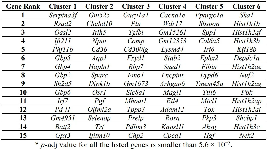 . Top 15 up-regulated genes in each cluster.