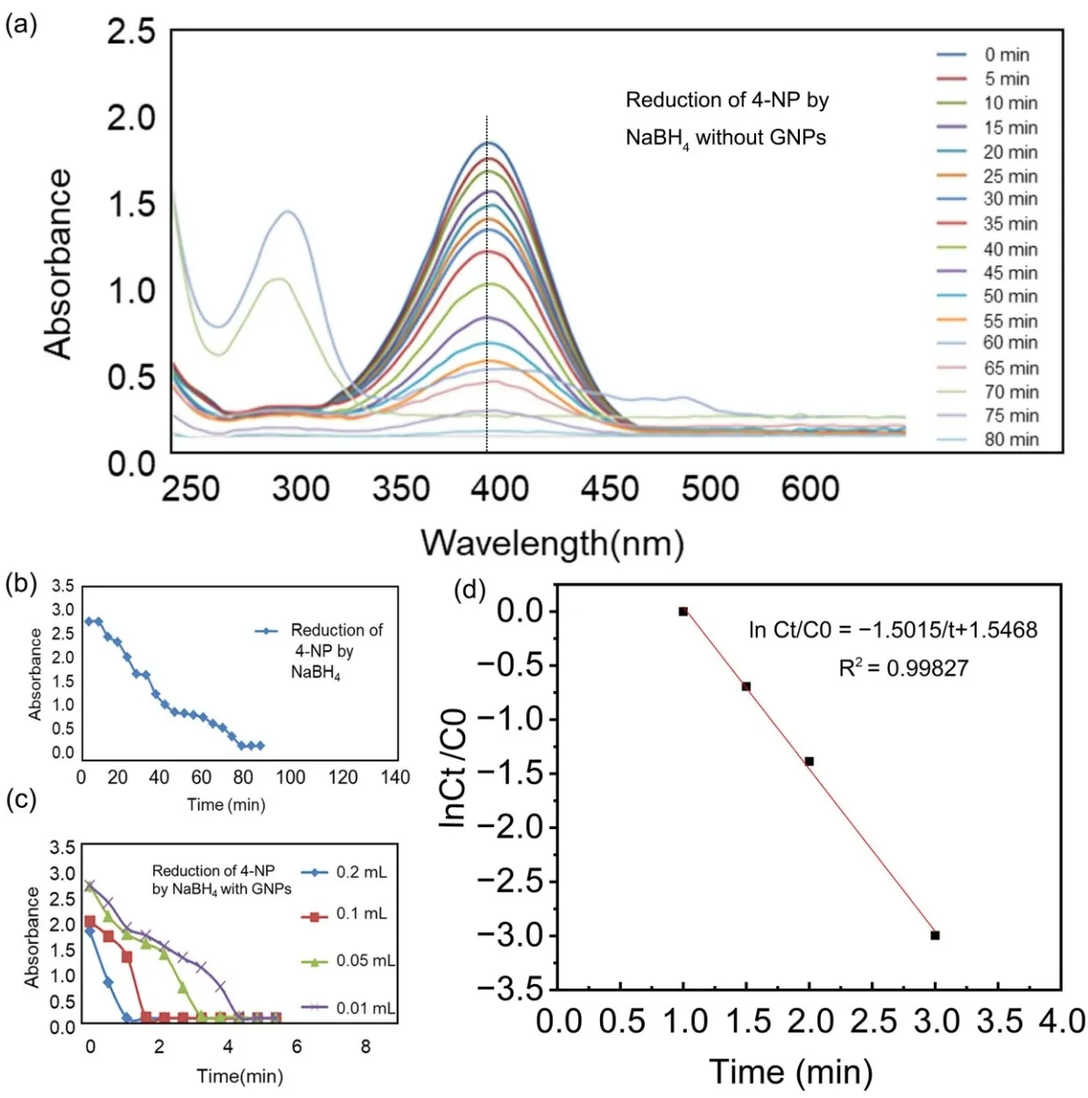 2.6.1. Catalytic Reduction of 4-NP by GNPs