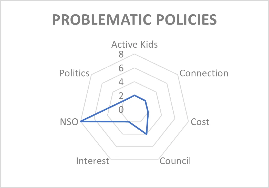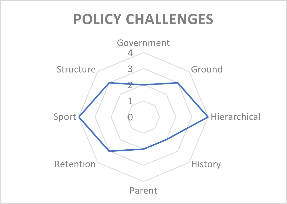 41], the complex policy situation presents barriers to that aim. There are numerous concerns for community sport, including scant resources, decreasing participation levels, fluctuations in volunteer numbers, difficulties with diversity, challenges with inclusion, variations in skills desirable for managing CSCs, and problematic policy matters [