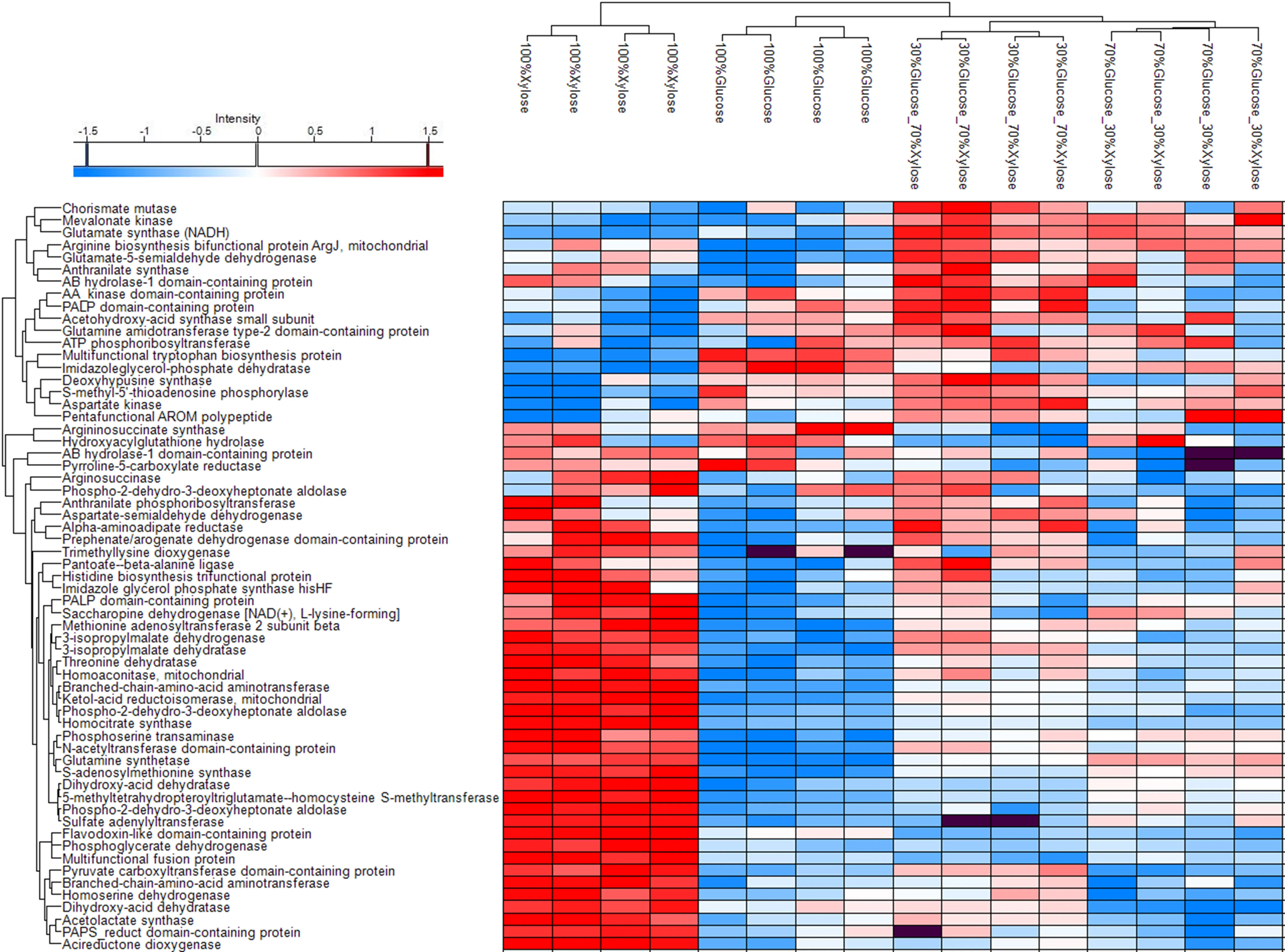 8]. Carbon source-dependent growth effect analysis through proteomics has already been studied in bacteria. The effect of glucose and xylose on butanol production by Clostridium acetobutylicum has revealed a cluster of 22 differential expressed proteins between the two substrates [