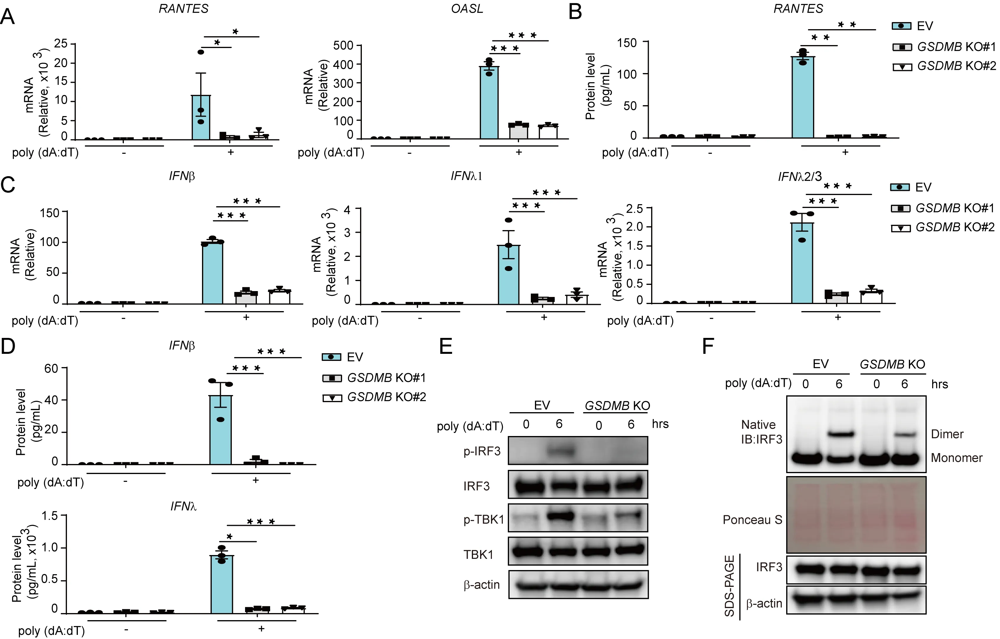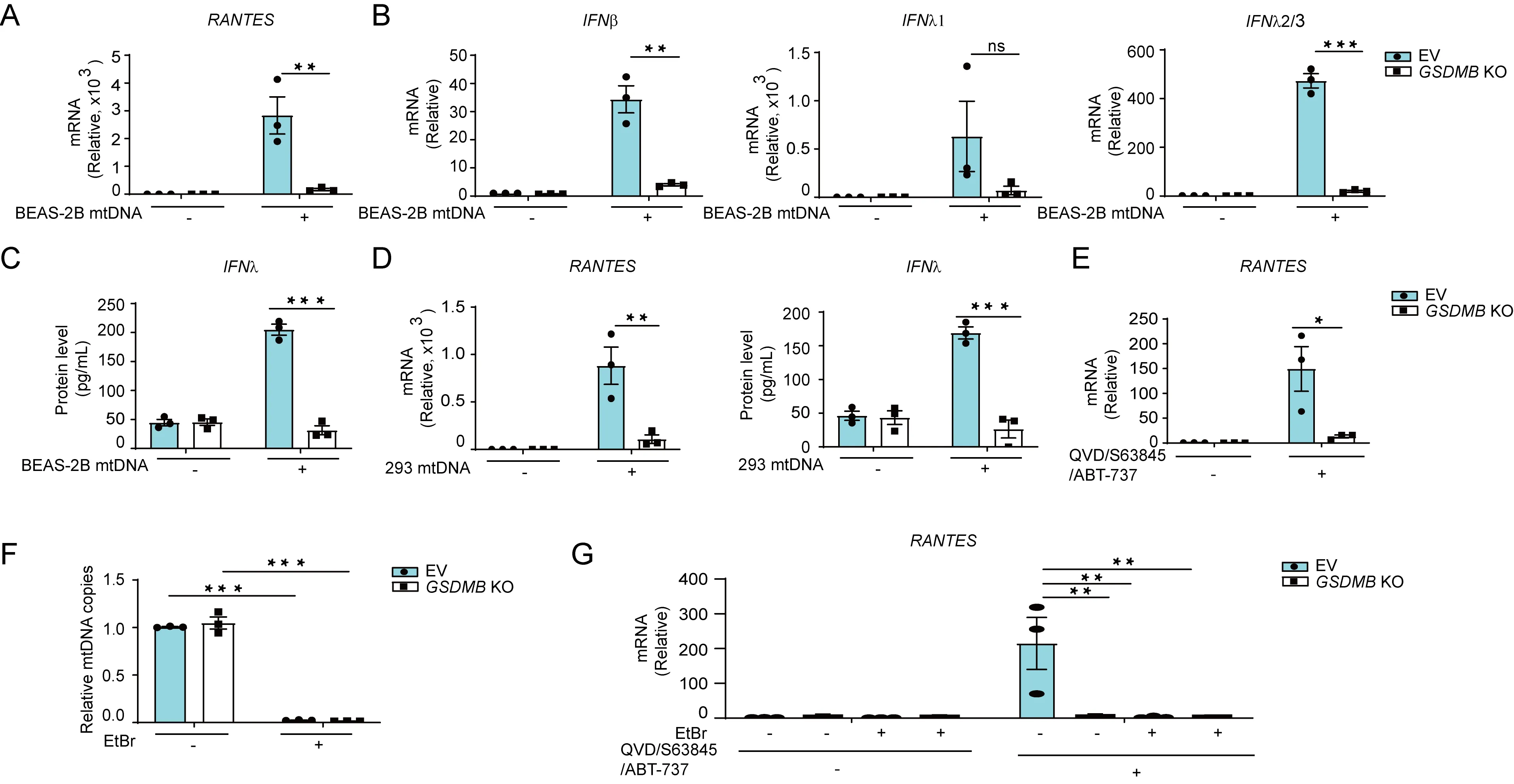 In this study, we found that GSDMB promotes mtDNA-induced IFN production and subsequent