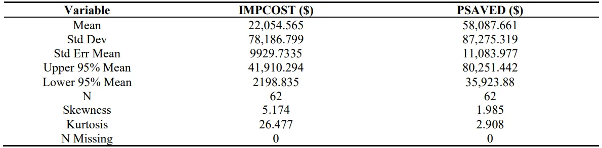 60]. The adoption of this method could influence the broader acceptance of IIoT in manufacturing by showcasing potential cost efficiencies and guiding strategic resource allocation and may catalyze broader IIoT acceptance by underscoring potential efficiencies. Therefore, the data was collected to assess whether the projected cost savings (PSAVED) and implementation costs (IMPCOST) are statistically different from each other. The following hypothesizes were tested to explore these relationships: