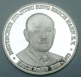 The situation is different when it comes to medals as an award for special merits. Austrian Fujiyama Order, later known as Order of Fujiyama Knight, during 1950–1998 was the most important distinction of the international martial arts movement today referred to as Idokan organisation. It was first issued in 1950; most probably less than n = 100 copies of that medal were made, one-sided pattern, in bronze [