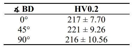 For the analysis of the influence of the build orientation on the microstructure, mechanical, and functional properties, fixed process parameters of