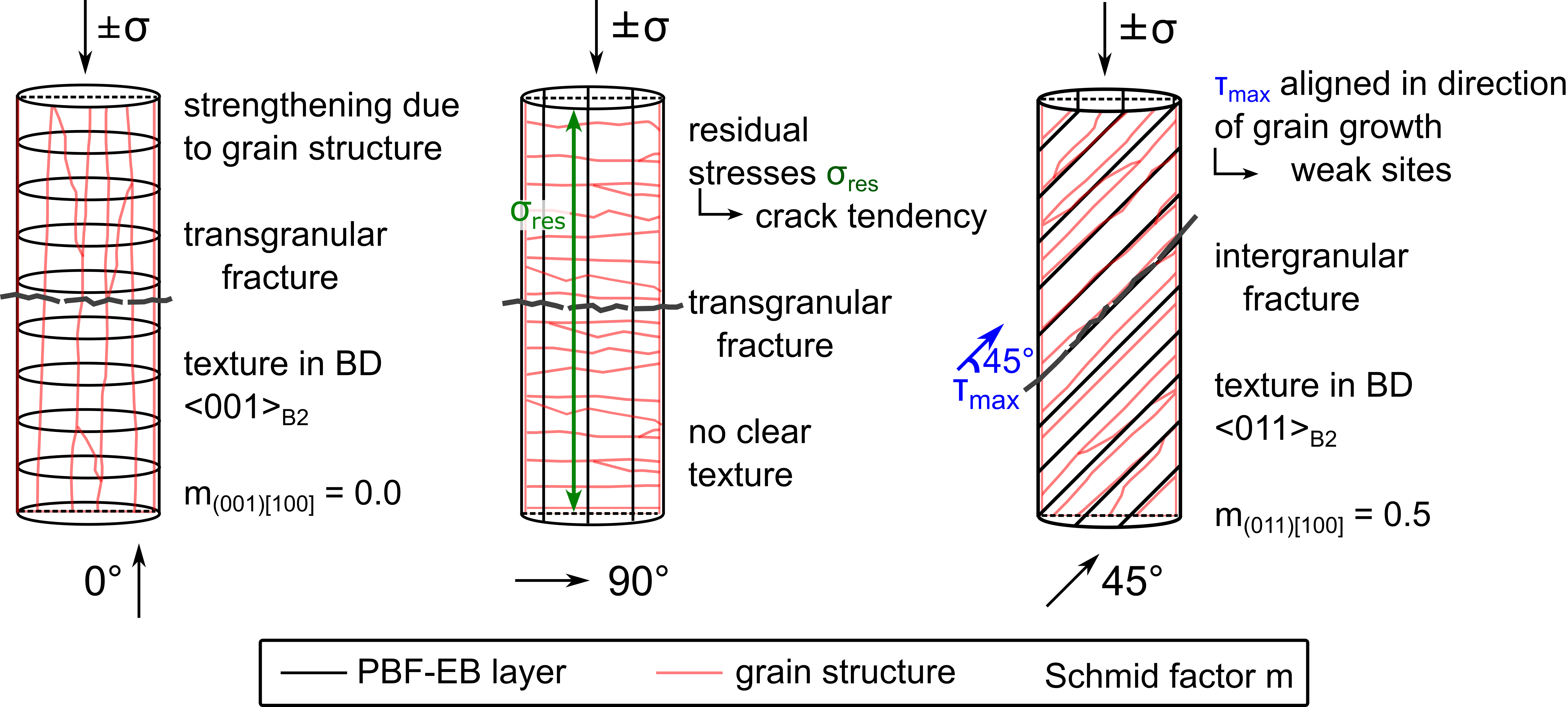 2], which could be controlled by the process parameters of PBF-EB using Ni-rich NiTi. As already shown in the manufacturing of shape memory alloys via laser powder bed fusion (PBF-LB), the build orientation influences the functional and mechanical properties [