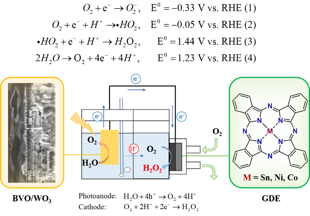 4 photoanode was utilized in conjunction with an MPc-modified GDE to overcome mass transfer issues in ORR and enhance the synthesis efficiency of H