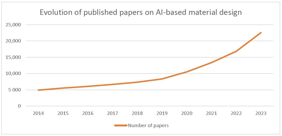 Figure 1. Evolution of published papers on AI-based applications in material science over the last 10 years.