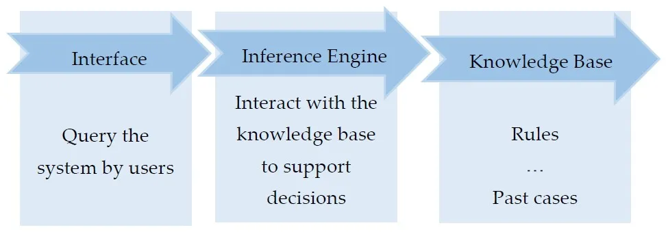 15]. It also contains the three components of a knowledge-based system and solves specific problems by using interactions of the inference engine and knowledge base and continuously updating the knowledge base with new data. There are three characteristics that every expert system should possess: (1) Consistency, which refers to the ability to obtain the same results from the same input set; (2) Availability, implying that the knowledge of the expert system is always present and is inherently built-in, without requiring years of training like human experts; (3) Comprehensiveness, which refers to the ability to gather knowledge from different human experts, thereby producing different relevant outputs. Finally, expert systems are seen not only as tools to assist human experts but also as substitutes for decision-making.