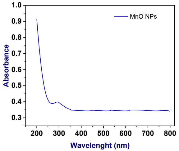 The green-synthesized MnO nanoparticles were then characterized using various spectroscopic techniques. The band gap energy was determined by employing the absorption spectra of a UV-Visible spectrophotometer. X-ray diffraction (XRD) analysis was performed to detect the crystalline structure of the synthesized nanoparticles. Energy-dispersive X-ray spectroscopy (EDX) analysis was conducted to confirm the chemical composition of the green-synthesized MnO nanoparticles. Morphology determination of the synthesized nanoparticles was carried out using a scanning electron microscope (SEM). Fourier transform infrared (FTIR) analysis of the synthesized nanoparticles was performed to highlight the involvement of biological moieties from the plant extract.