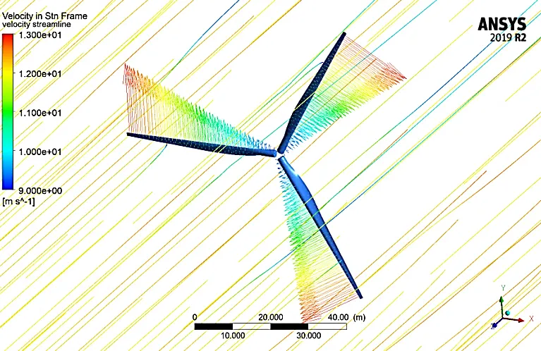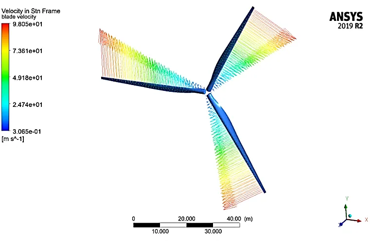 Modelling the aerodynamic forces and flow characteristics that the wind turbine blades encounter as they revolve is necessary to simulate the velocity vectors for the blades. For such simulations, a variety of techniques and software tools are available, such as computational fluid dynamics (CFD) and blade element momentum (BEM) theory.