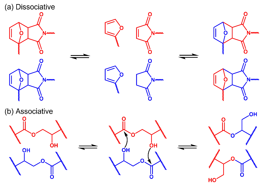 Not all crosslinked polymers containing dynamic covalent bonds are called vitrimers. According to the exchange mechanism, dynamic covalent polymer networks can be divided into two categories: dissociative networks and associative networks [