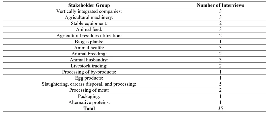 Stakeholder selection concentrated on important industries and companies in the livestock value chain that had been identified through internet research and an analysis of the Creditreform database