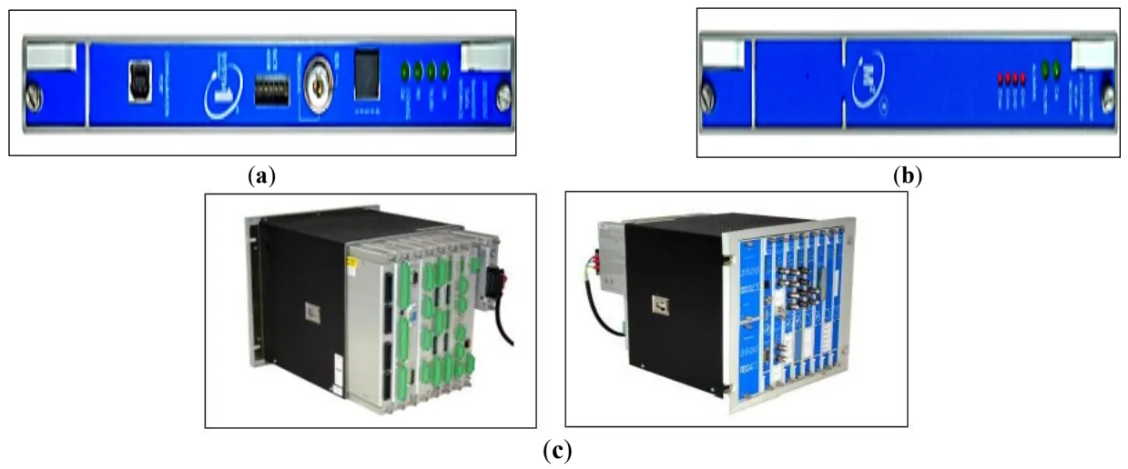 . (<b>a</b>) Transient data interface (<b>b</b>) Relay modules (<b>c</b>) Input/Output Modules [