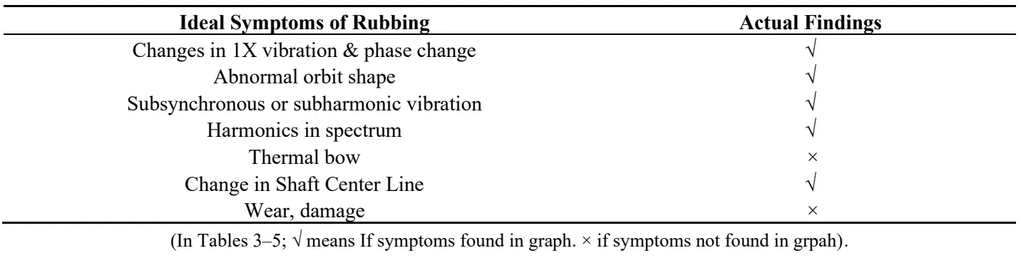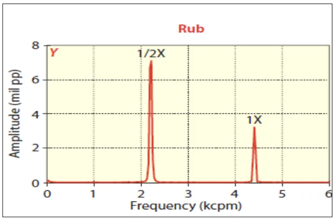 Rubbing is consistently a secondary effect induced by various factors such as excessive radial loads, looseness, external or internal misalignment, piping strain, foundation issues, uneven thermal growth, a locked gear coupling, or a misaligned internal component. In other words, rubbing doesn’t occur in isolation but is a consequence of underlying issues that impact the proper functioning of the machinery. Excessive radial loads, whether due to imbalances or other issues, can lead to components coming into contact, resulting in rubbing. Looseness in the machinery structure or misalignments, whether internal or external, can also lead to parts shifting from their designated positions and causing unintended contact.Factors like piping strain, foundation problems, and uneven thermal growth further exacerbate the likelihood of rubbing. Even a locked gear coupling or an internal part being out of its intended position can create conditions conducive to rubbing. shows the rub spectrum.