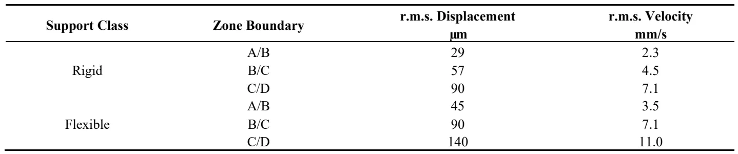 ISO 20816-3, titled “Mechanical vibration—Measurement and evaluation of machine vibration—Industrial machinery with a power rating above 15 kW and operating speeds between 120 r/min and 30,000 r/min”, is the standard for establishing acceptable criteria for machine vibration. This document outlines general requirements for assessing the vibration of diverse industrial machines with a power rating exceeding 15 kW and operating speeds ranging from 120 r/min to 30,000 r/min when measurements are conducted in-situ. The numerical values specified in the document are intended as guidelines based on global machine experience. However, users are advised to use these values sensibly, considering specific machine features that may render the values inappropriate. Evaluating the machine condition involves considering both shaft vibration and related structural vibration, as well as specific frequency components that may not always correspond with the given broadband severity values. To facilitate this assessment, ISO categorizes machine health into different zones, with details elaborated in the standard. classifes the machine support class, zone boundary and maximum rms vibration amplitude in both dsiplacment and velocity units. These zones provide a structured framework for interpreting and evaluating machine vibration data to ensure effective monitoring and maintenance practices [