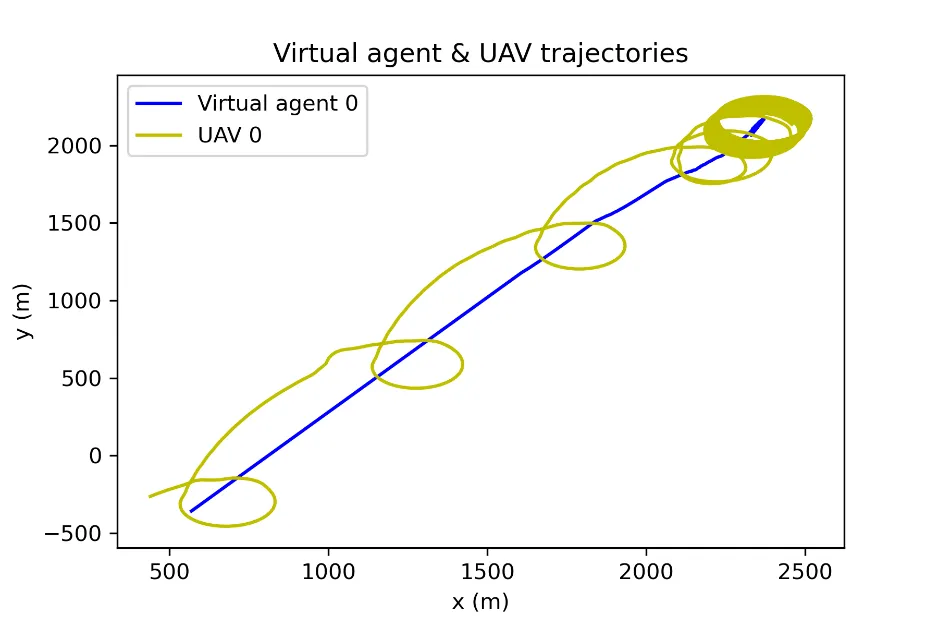 4. A UAV control strategy to guide safely the UAV to loiter over its virtual agent and synchronize its phase with neighboring UAVs.