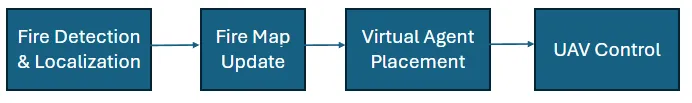 Once they have received the command and fire map, the UAVs start deploying toward the fire, each UAV includes to following software modules to accomplish its mission: