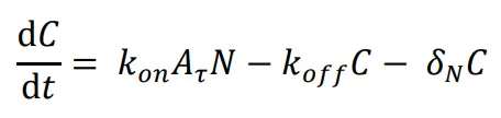 A*) and the association and dissociation rates of the NanoDeg and *A