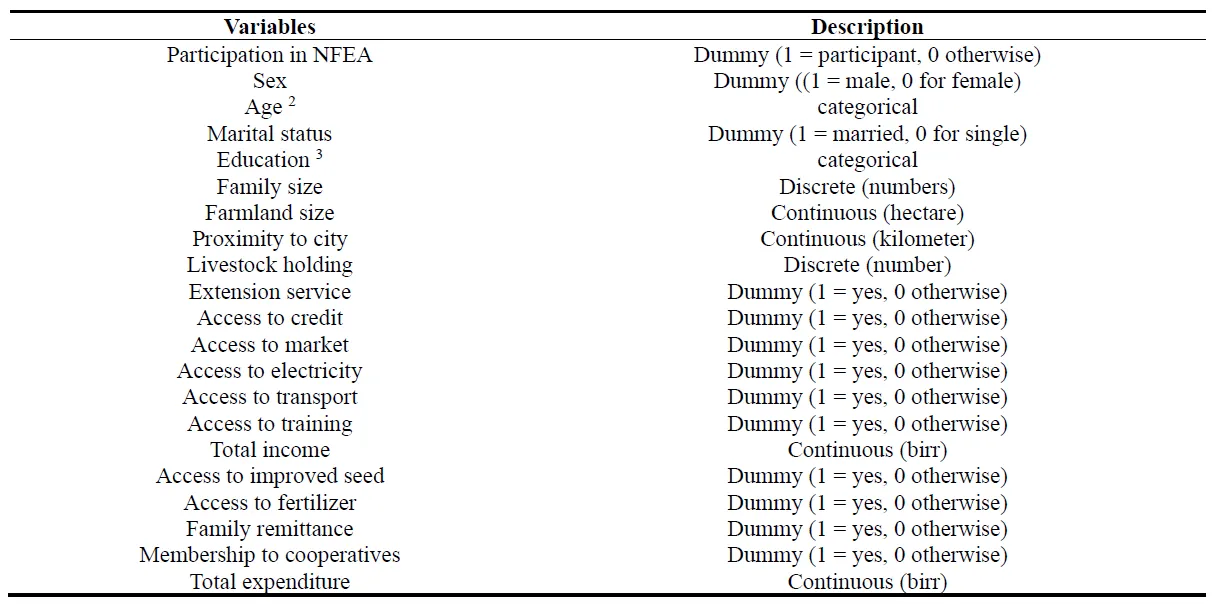 13] showed that households with little assets, education, and infrastructure are constrained to participate in NFEA. Ref. [