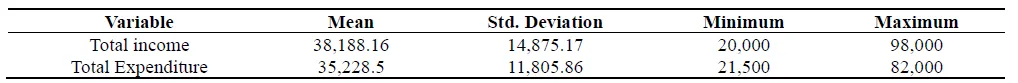 Yi are two counterfactual outcomes for participants and non-participants. Using a suitable algorithm, the impact of participation on household livelihood outcomes is estimated by considering other covariates. The covariates are those assumed to affect the income and expenditure of households based on empirical evidence. The description and lable of variables are presented in .