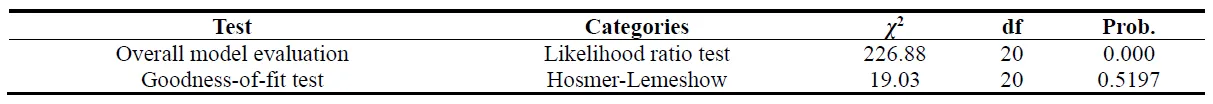 n is less than the marginal value of farm labour. Thus, the binary decision is a function of exogenous variables since the optimal nonfarm work hours are jointly determined with farm labour allocation modelled by the probability models. A binary logistic model was used to identify the determinants of participation in NFEA because the dependent variable is binary. Therefore, the household has two choices either to participate or not participate in RNFEA. Households who participate in NFEA are denoted by 1 and 0 otherwise. As of [