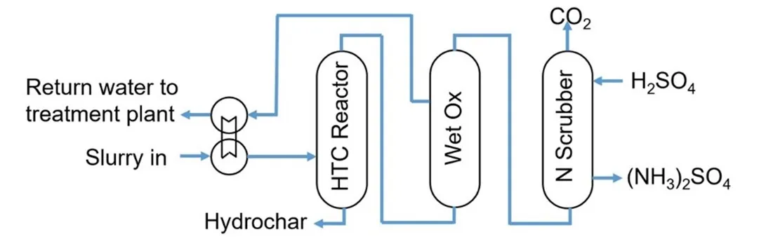 The sludge is heated in HTC due to the wet oxidation of C within the process water, in which it is estimated that 30% of C [