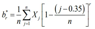 The product moment estimation of distribution parameters for highly skewed flood flow information can be replaced by linear moment approximation, also known as the L-moment method [