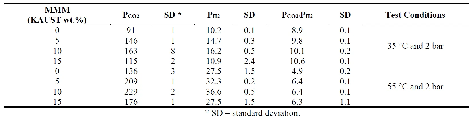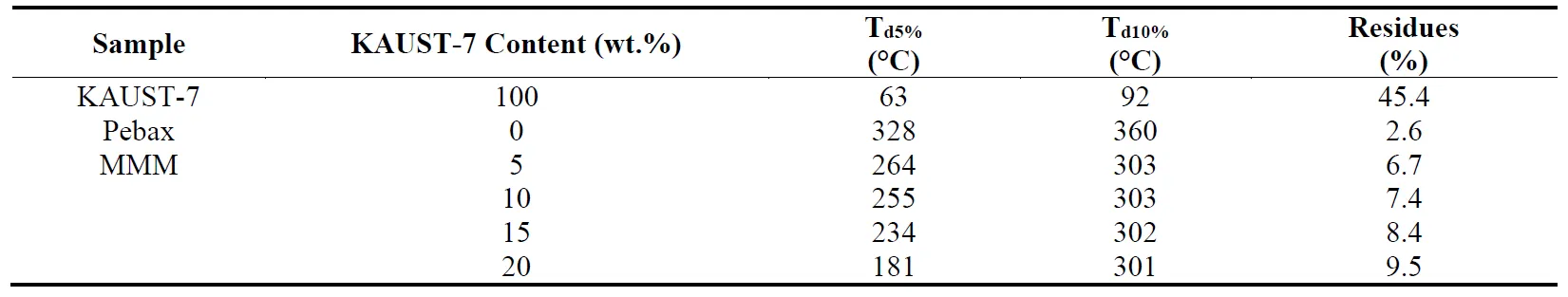 38] produced MMM using KAUST-7 and 6FDA-durene (6FDA: 4,4′-(hexafluoroisopropylidene) diphthalic anhydride) for CO