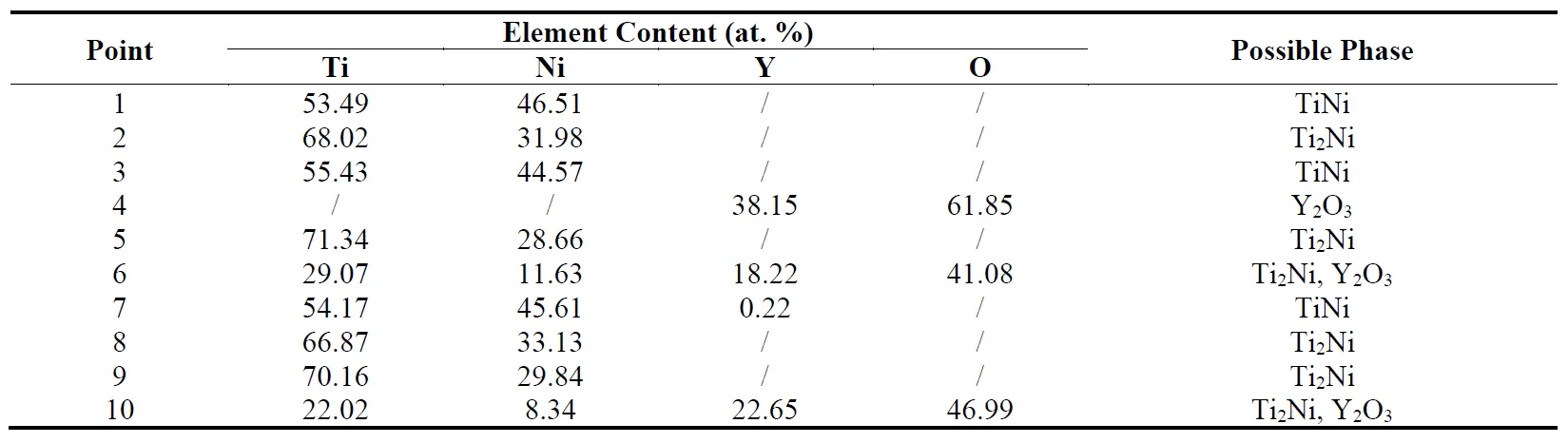 2Ni matrix. From (c1,c2) and EDS results (spots 6–8) in , the same residual TiNi and inclusions Y