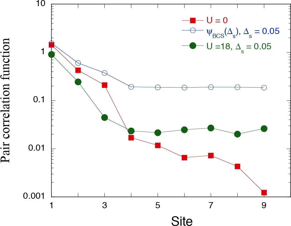 49]. One may wonder why the effective attraction arises between electrons from the on-site repulsive Coulomb interaction. This effective pairing interaction may originate from the effective nearest-neighbor exchange coupling and the kinetic energy effect. On this subject, the ladder Hubbard model (two-chain model) has also been studied [