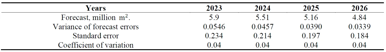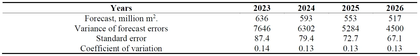 The main objective of the study was to build a forecast of the development of the textile industry of the Russian Federation for the next few years. The forecast was carried out based on the analysis of time series of textile industry indicators over the past 20 years using a bank of mathematical forecasting models and a criterion for choosing a model with a minimum variance of forecast error.