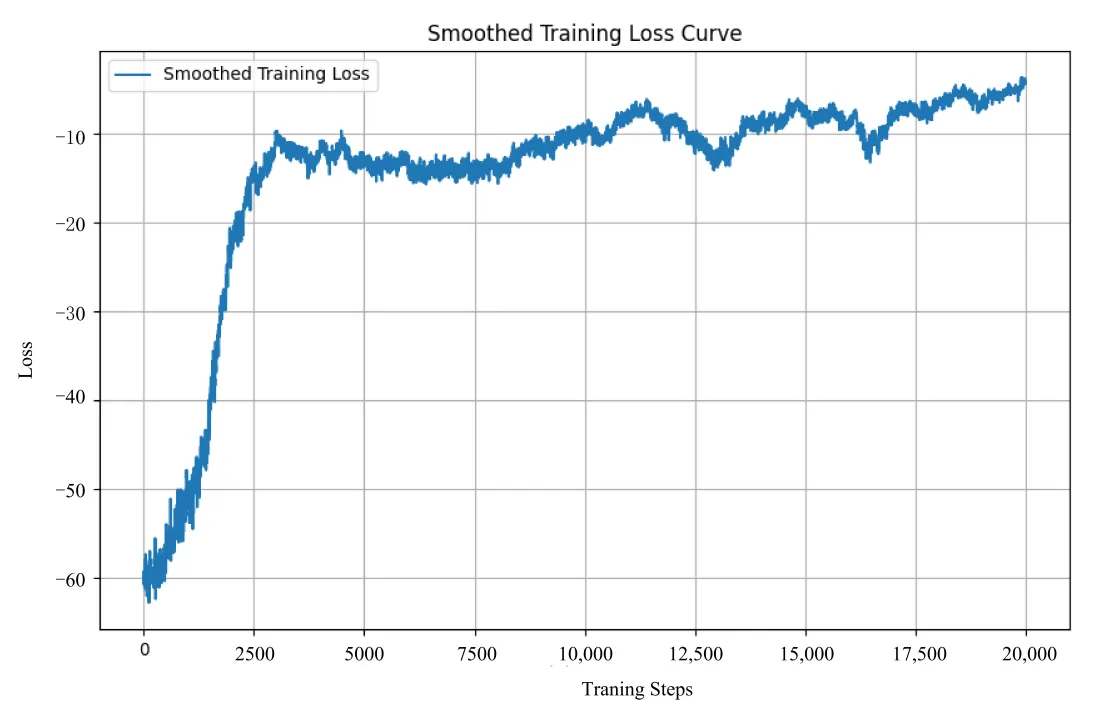 shows the trend of S-UAV in the loss curve. Since $$log[p(\tau_k\mid\theta)]<0$$, the curve actually responds to the process of change in the cumulative reward $$J_{i(\tau_k)}$$.