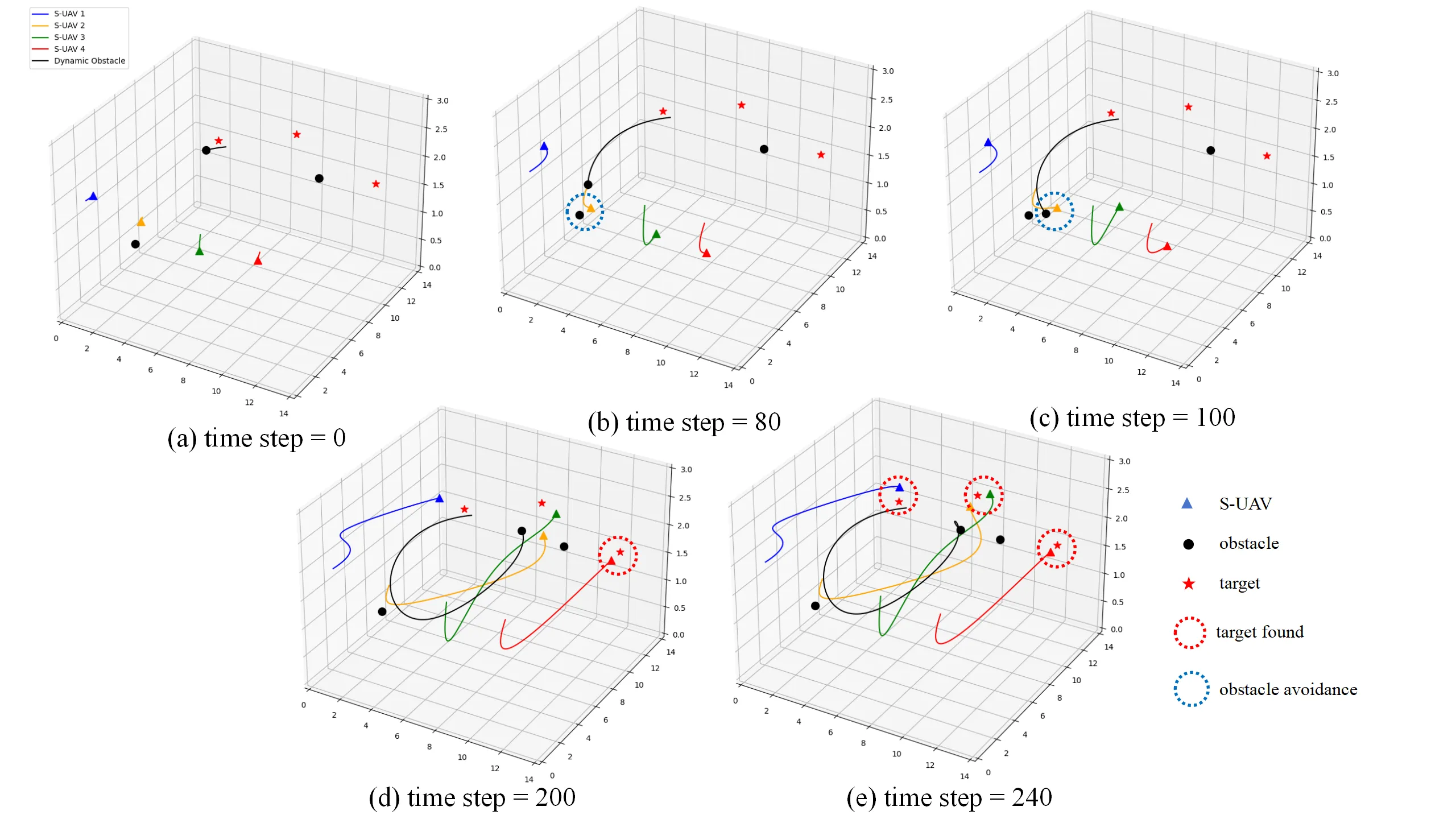 . Trajectories of S-UAV in 3D space at different time steps.