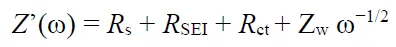 Z’(ω) of the total impedance of the cell is the sum of the real part of the four components: