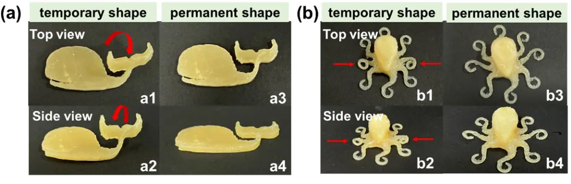 20%, shape memory ‘whale’ and ‘squid’ models were successfully printed with optimized printing parameters.